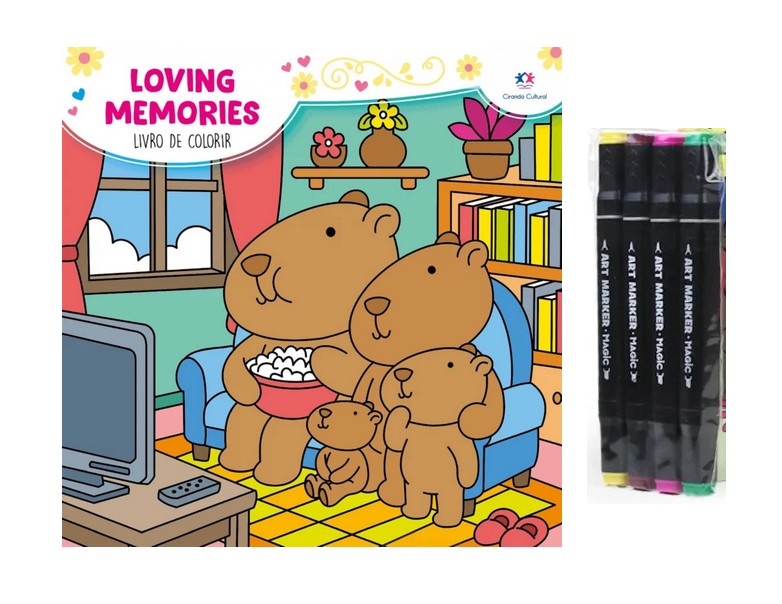 Loving Memories é inspirado nos vídeos fofos de colorir para relaxar, que conquistaram o tiktok. Encontre seu lugar preferido, solte a criatividade com cores vibrantes e deixe-se levar pela magia de pintar cenas cheias de afeto. É a atividade ideal para relaxar e aquecer a alma transformando cada ilustração em uma lembrança repleta de amor. Livre para todos os públicos, este livro é perfeito para aliviar o estresse e se desconectar da correria do dia a dia e ainda acompanha 4 Canetinhas Marcadoras (cores variadas).